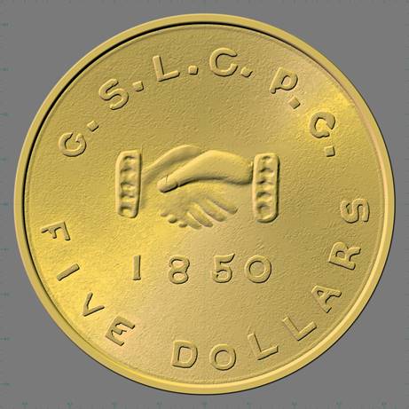 In that same auction was a previously unheard of “P & R.R. Smith & Co. COL. TER.” Five Dollar gold piece (reverse) die. It is apparently a mate for the 1862 “UNION” die that Mumey used. This was determined by the matching characteristics of the die shanks. The auction description for this die makes the hypothesis that it was created for Colonel R.R. Smith who was in the Confederate army at the time. There appears to be no basis in fact for this claim. No Colonel in the Confederacy is going to have time to make gold coins in Colorado in 1862, and they certainly aren’t going to put “UNION” on them if they did. No original records, documents, or news reports have ever been found that would identify “P & R.R. Smith”. No such coins have ever been reported and none are believed to exist.