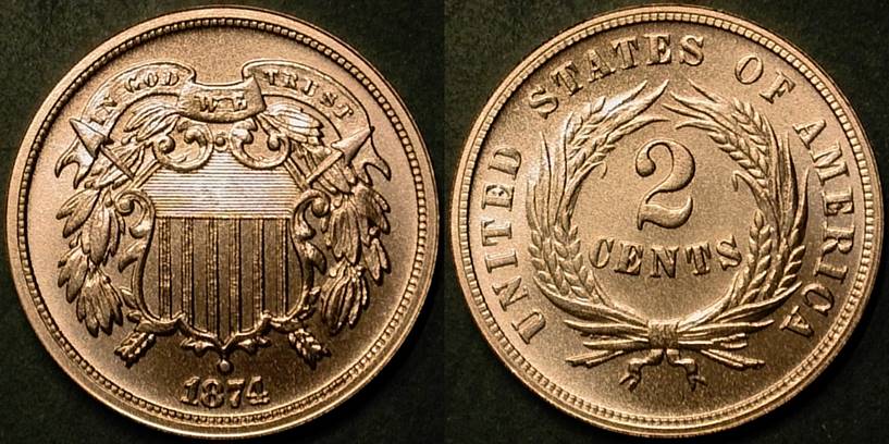 However, an 1874 two-cents revenue stamp featured an image of the obverse and